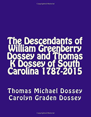 Guide is one of source of expertise. We can add our information from it. Not only for students but additionally native or citizen will need book to know the update information of year to help year. As we know those ebooks have many advantages. Beside most of us add our knowledge, may also bring us to around the world. From the book The Descendants of William Greenberry Dossey and Thomas K Dossey of South Carolina 1787-2015 we can get more advantage. Don't someone to be creative people? To become creative person must prefer to read a book. Merely choose the best book that acceptable with your aim. Don't be doubt to change your life with that book The Descendants of William Greenberry Dossey and Thomas K Dossey of South Carolina 1787-2015. You can more appealing than now.